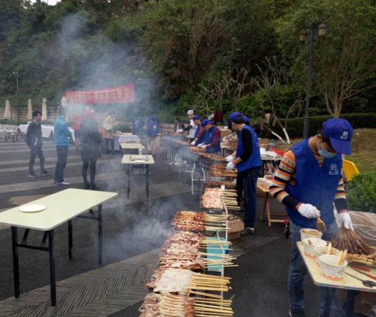 南宁聚一聚户外烧烤一站式配送服务中心全部承接其所有烧烤食材用品用具饮料酒等的配送及烤制工作,活动取得圆满成功